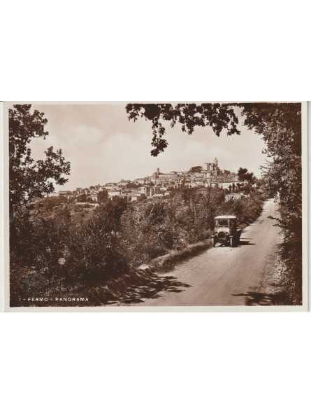 CARTOLINA MARCHE 1934 FERMO PANORAMA ANIMATA AUTO MF129583