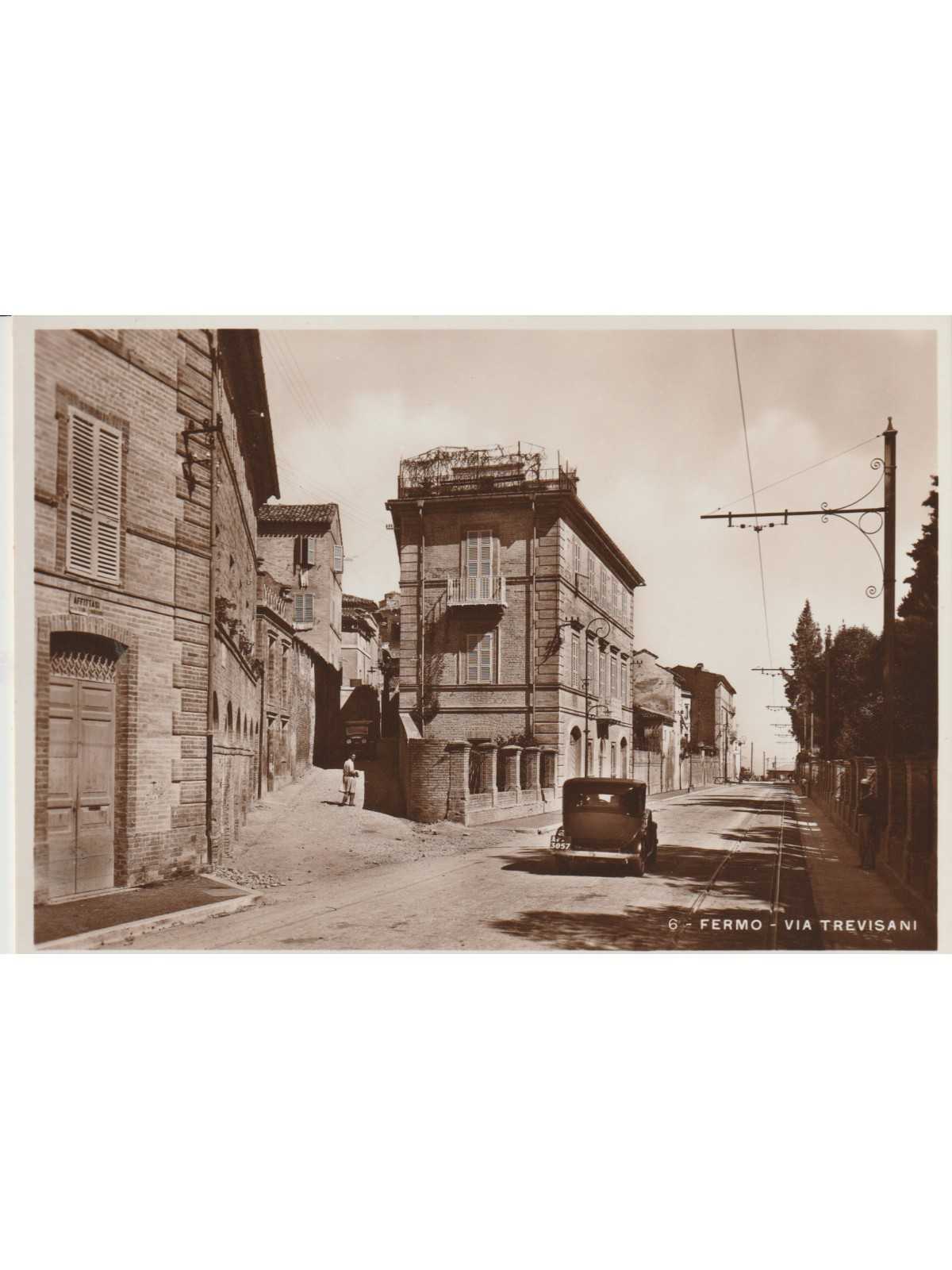 CARTOLINA MARCHE 1934 FERMO VIA TREVISANI ANIMATA AUTO MF129610
