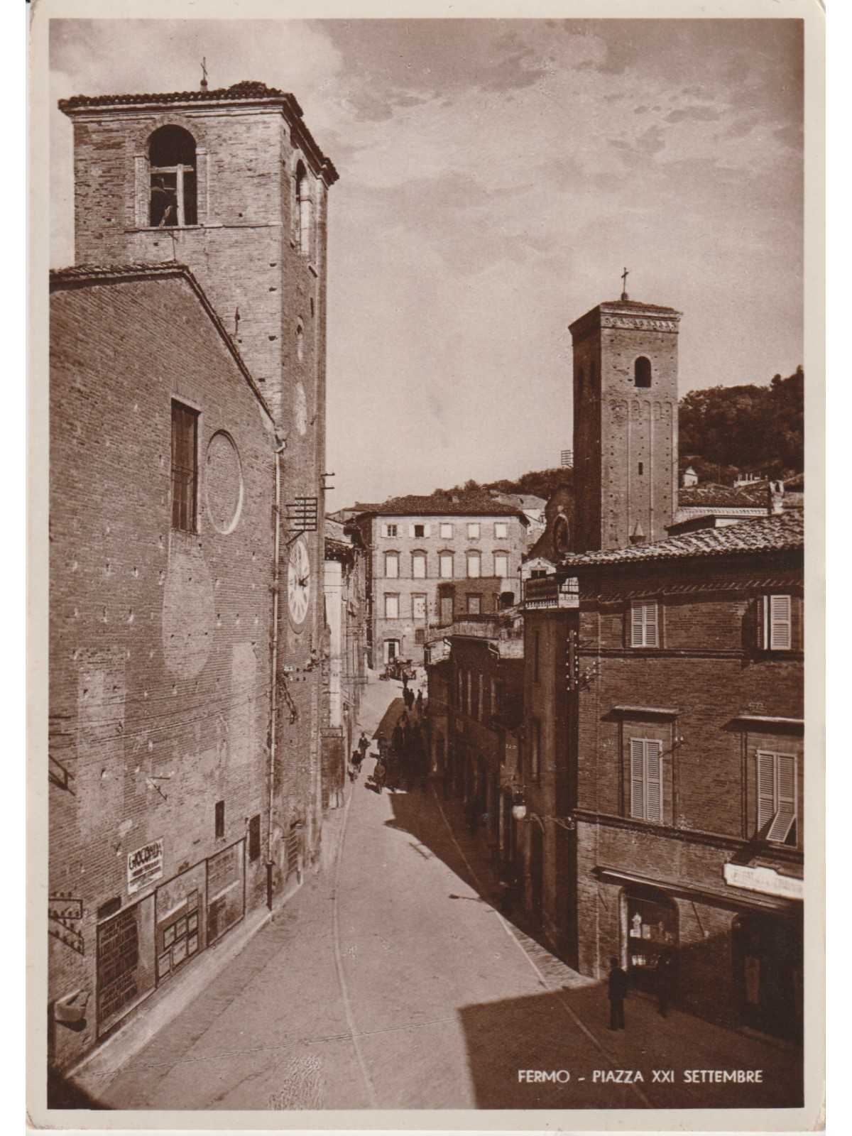 CARTOLINA MARCHE 1934 FERMO PIAZZA XXI SETTEMBRE ANIMATA MF129614