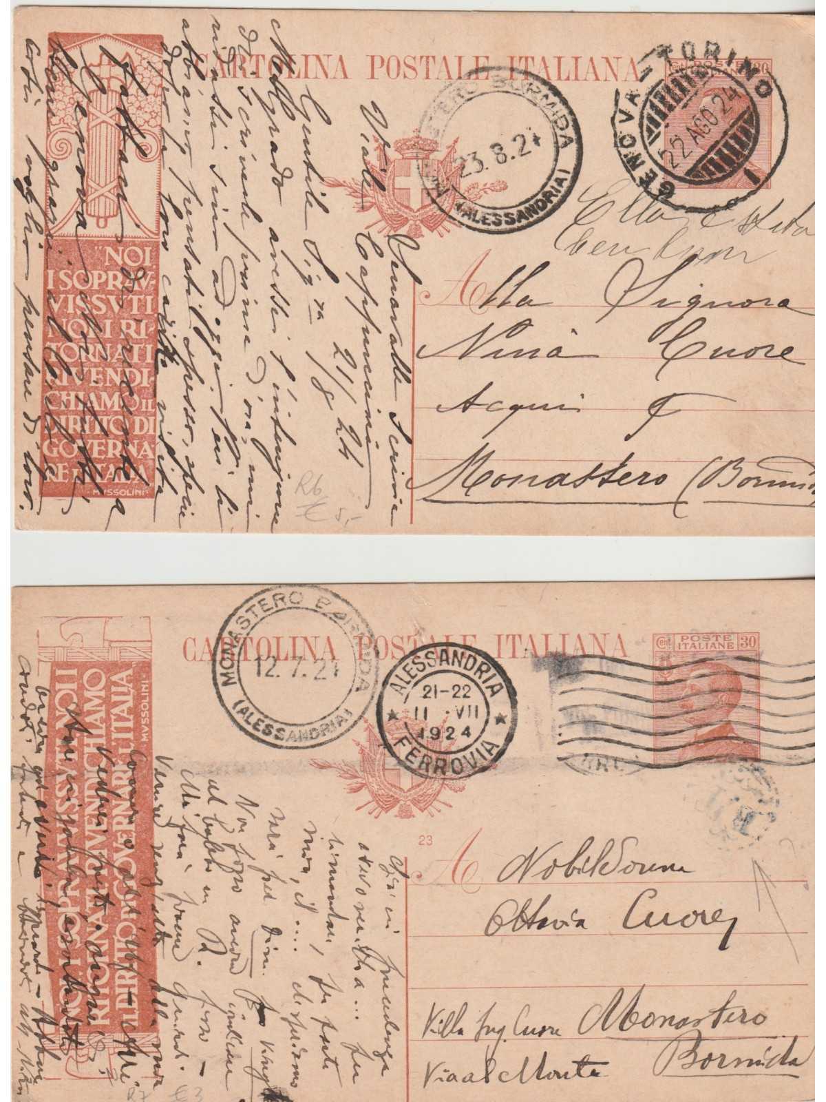 1922 - 24 REGNO D'ITALIA DUE INTERI POSTALI USATI FOTO MF129171