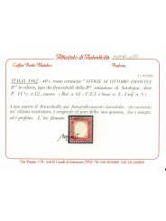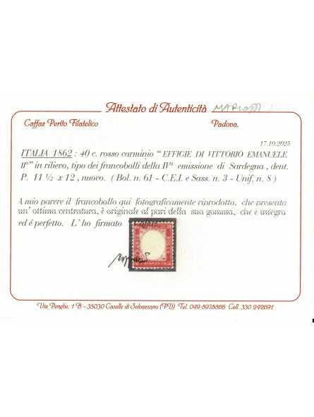 1862 REGNO ITALIA EFFIGIE VITT. EMANUELE II 40 C. CENTRATO MNH CAFFAZ MF133366