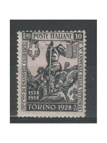 1928 REGNO D'ITALIA EM. FILIBERTO LIRE 10 MNH MF129075