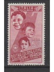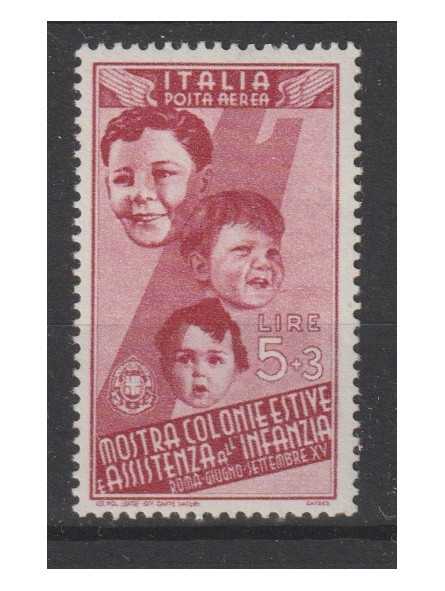1937 REGNO D'ITALIA COLONIE ESTIVE P.A. LIRE 5+3 ROSA 1V. MNH MF129393