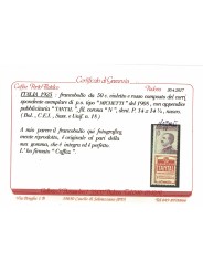 IL FRANCOBOLLO E' CORREDATO DA CERTIFICATO DI GARANZIA E. CAFFAZ