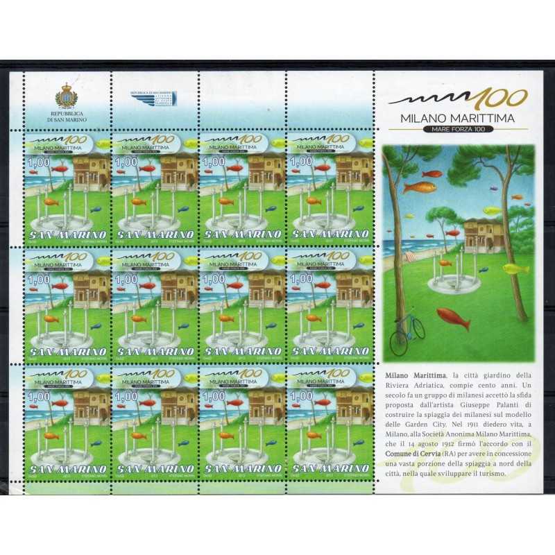 2012 SAN MARINO CENTENARIO DI MILANO MARITTIMA 1 MINIFOGLIO NUOVO MNH MF29929