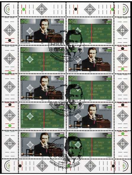 1995 SAN MARINO N. 1458 / 1459 MARCONI EM CONGIUNTA MINIFOGLIO USATO FDC MF120427