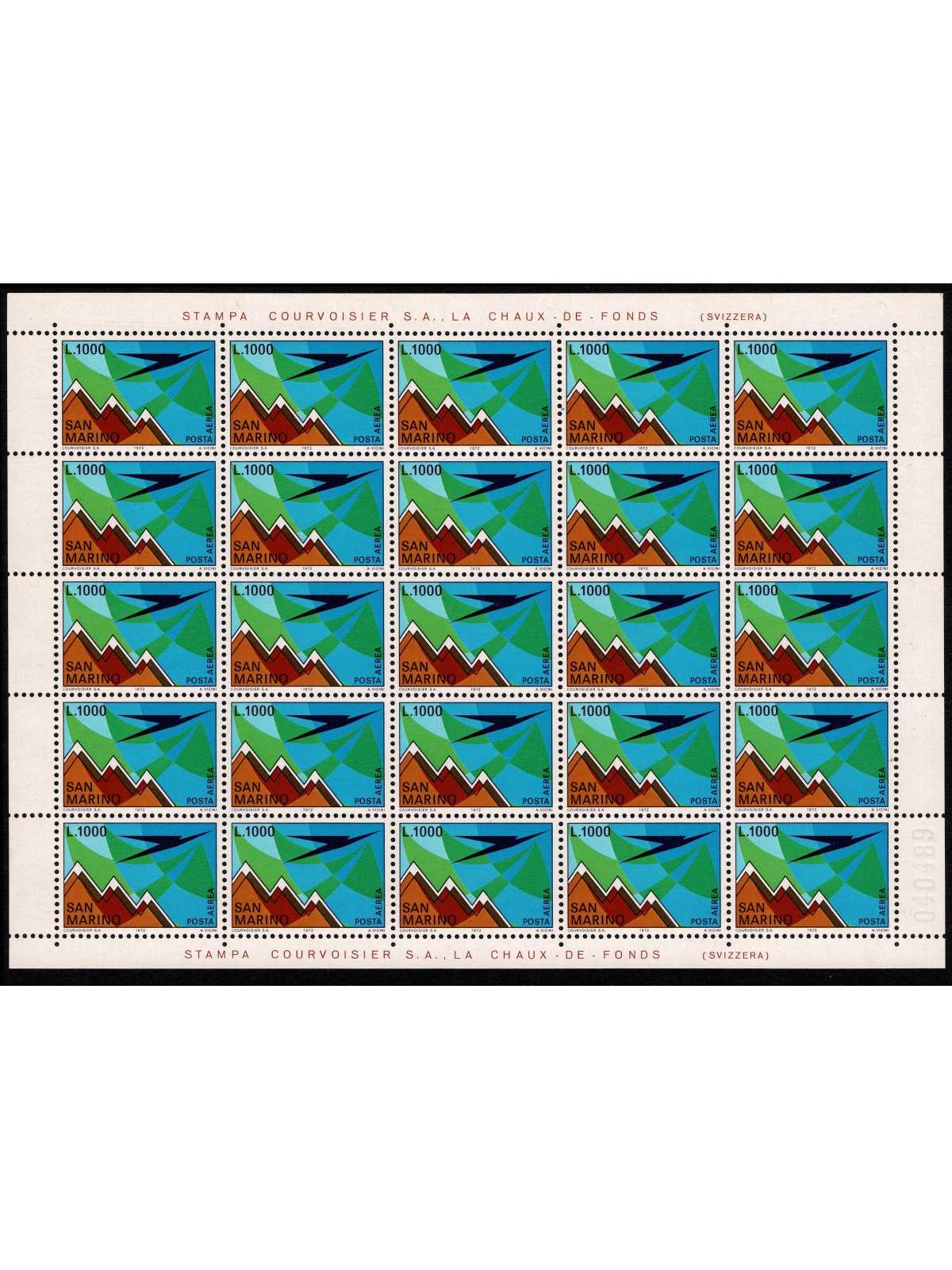 1972 SAN MARINO POSTA AEREA LIRE 1000 FOGLIO COMPLETO NUOVO MNH MF134098