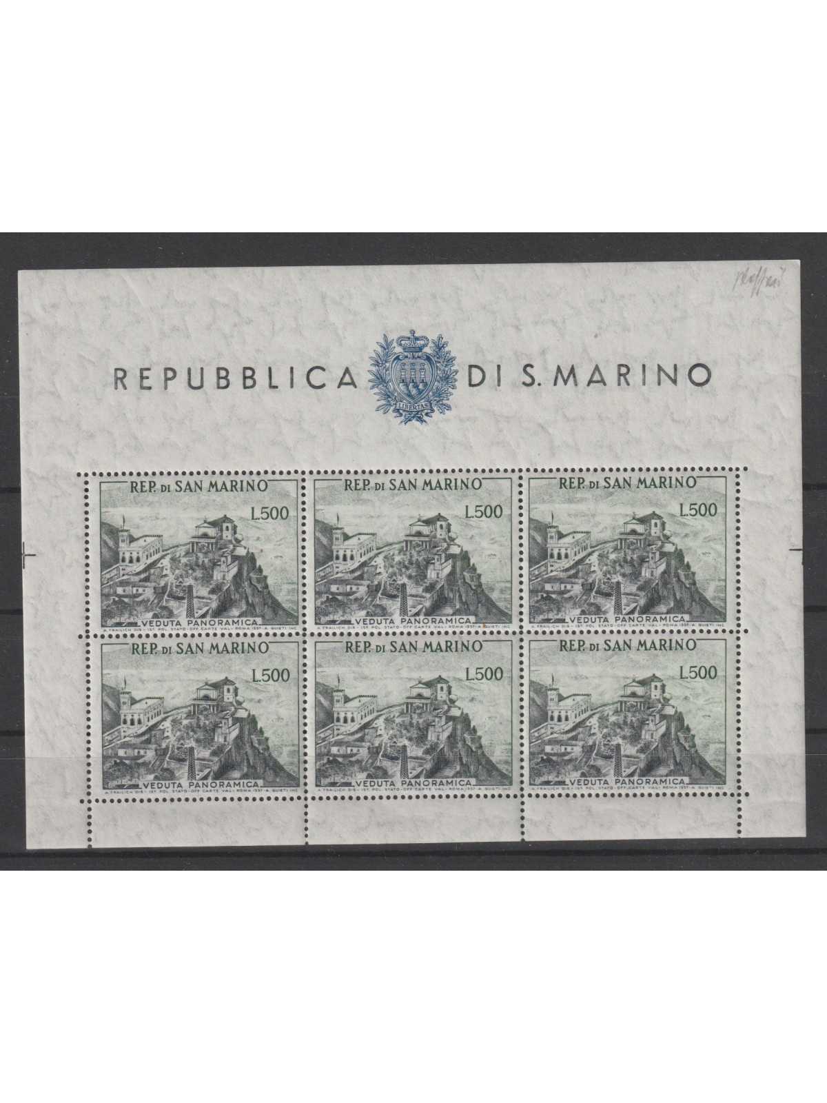 1958 SAN MARINO VEDUTA PANORAMICA Lire 500 BF 6 VAL MNH CAFFAZ MF126905