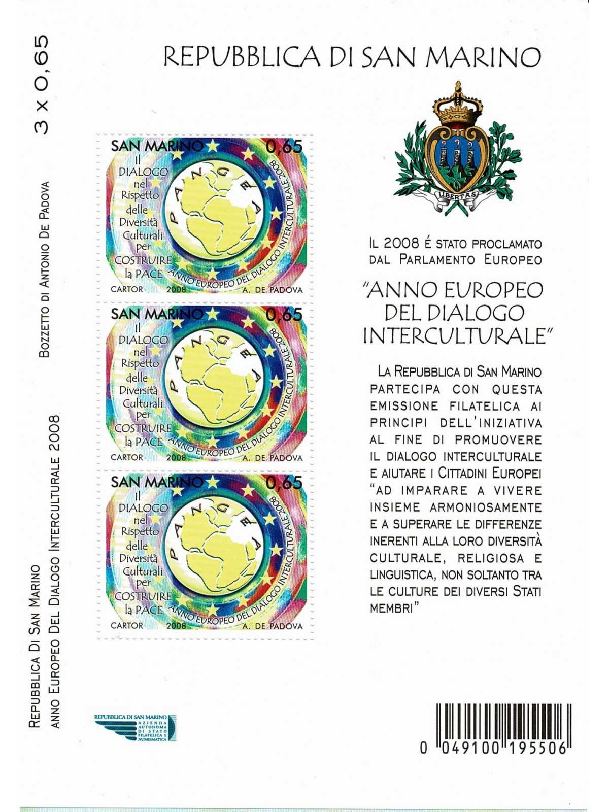 2008 SAN MARINO N. BF 94 ANNO DIALOGO INTERCULTURALE BF MNH MF135064