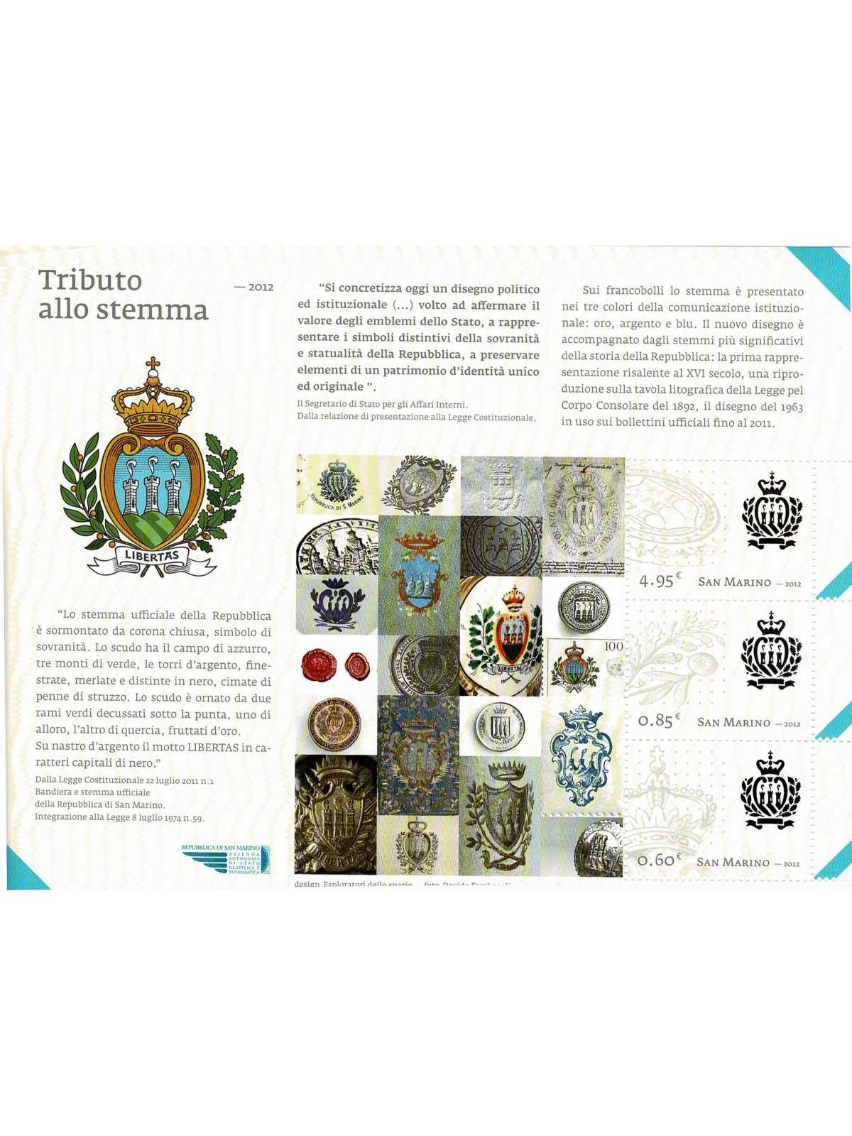 2012 SAN MARINO N. BF 117 TRIBUTO ALLO STEMMA BF MNH MF135133