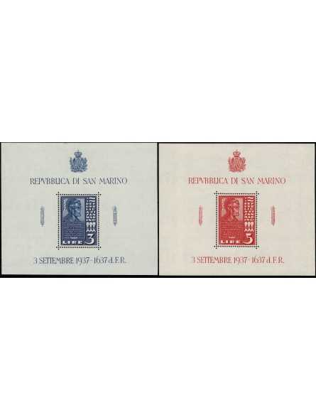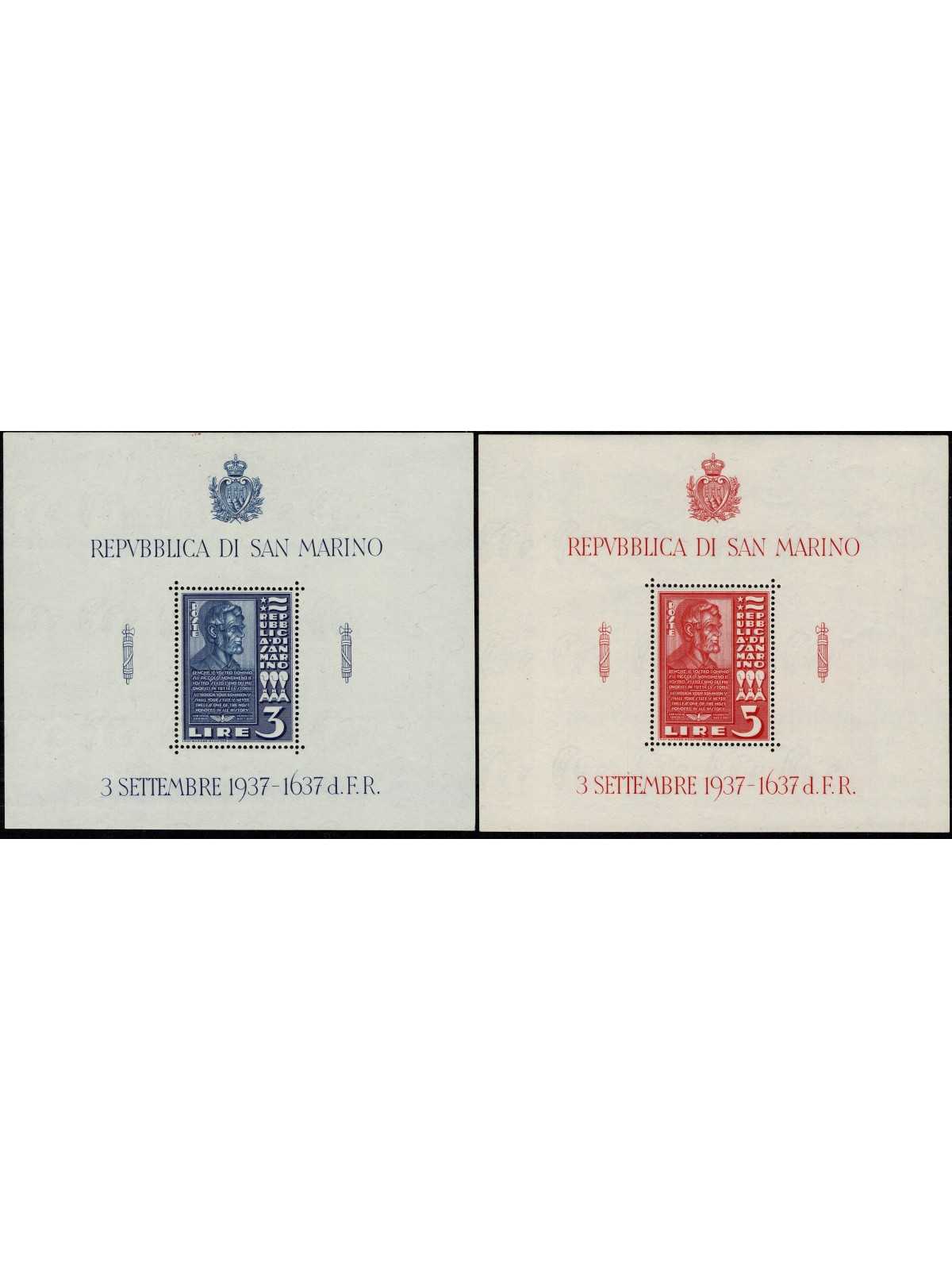 1937 SAN MARINO FOGLIETTO ABRAMO LINCOLN 2 BF NUOVI MLH MF132889
