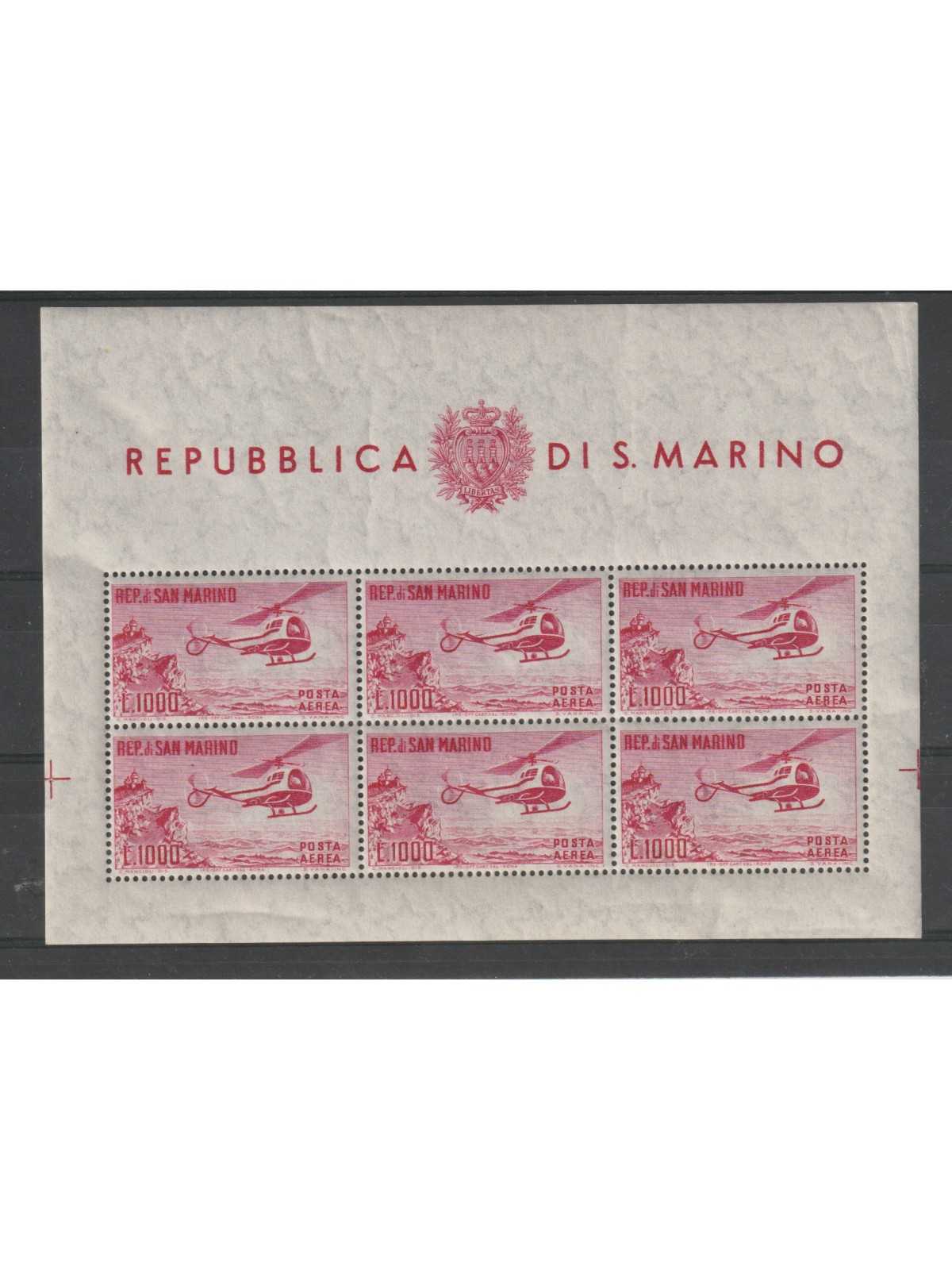 1961 SAN MARINO POSTA AEREA ELICOTTERO LIRE 1000 FOGLIETTO MNH MF129386