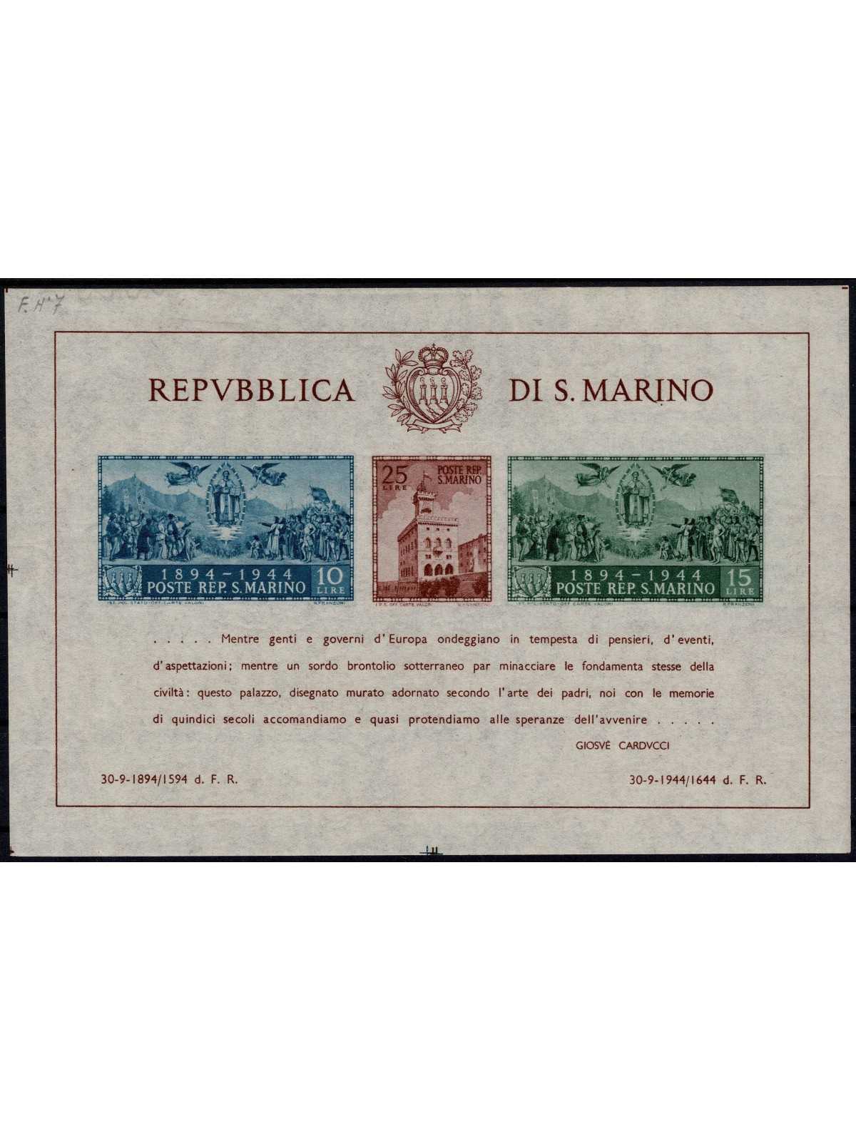 1945 SAN MARINO PALAZZO GOVERNO CARDUCCI 1 BF NON DENTELLATO MNH MF129552