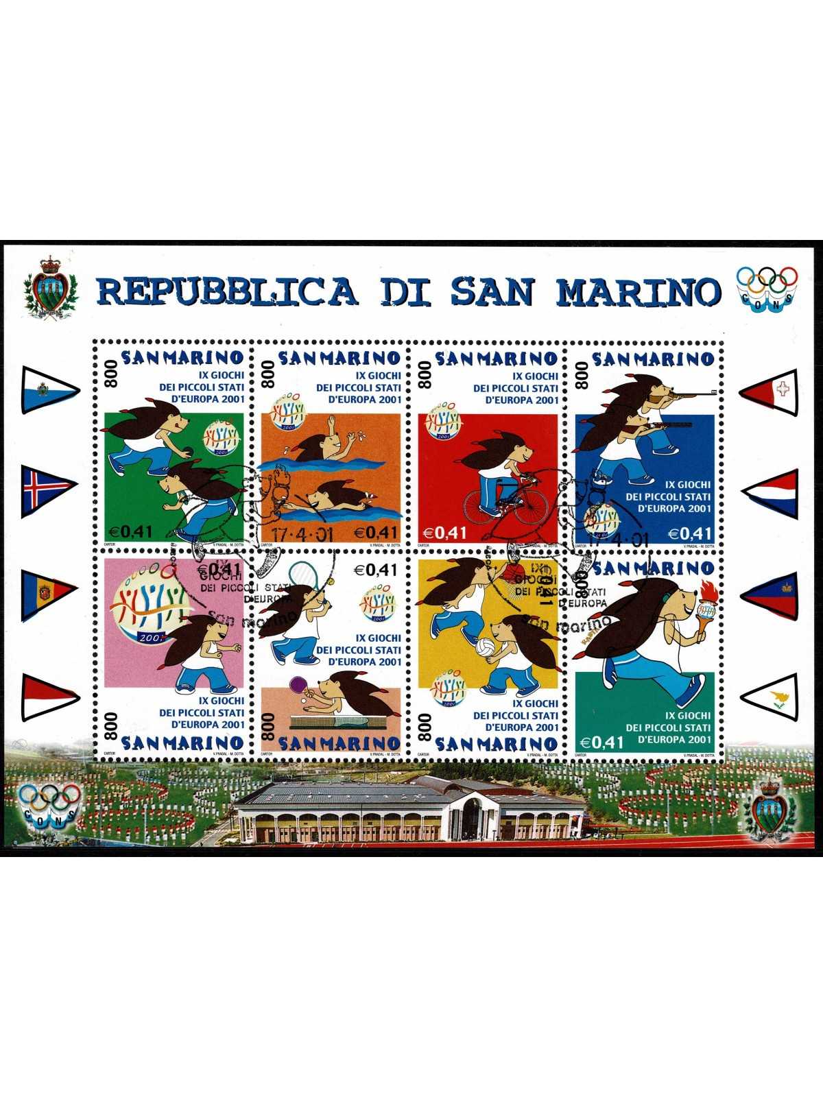 2001 SAN MARINO N. BF 73 IX GIOCHI PICCOLI STATI D'EUROPA BF USATO FDC MF133891