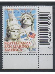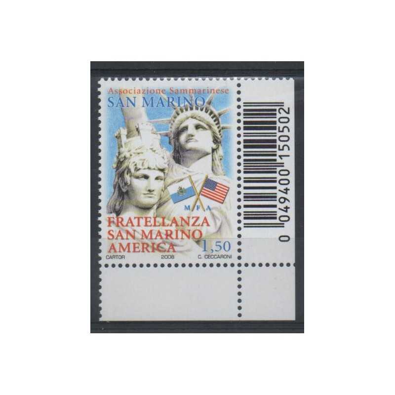 2008 SAN MARINO N. 2186 FRATELLANZA S.MARINO-AMERICA MNH CODICE A BARRE MF64602