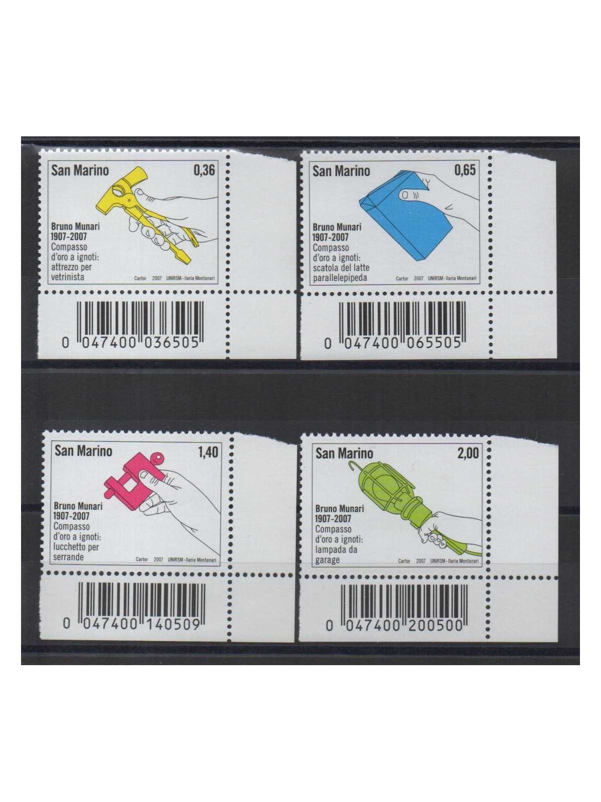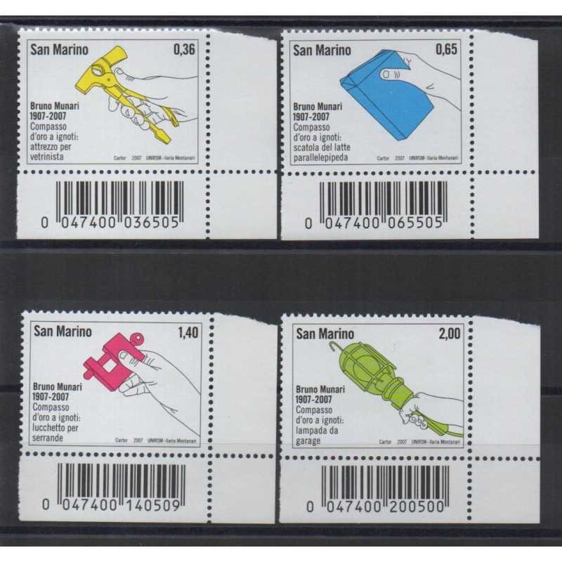 2007 SAN MARINO N. 2137 / 2140 BRUNO MUNARI 4 V. MNH CODICE A BARRE MF64604