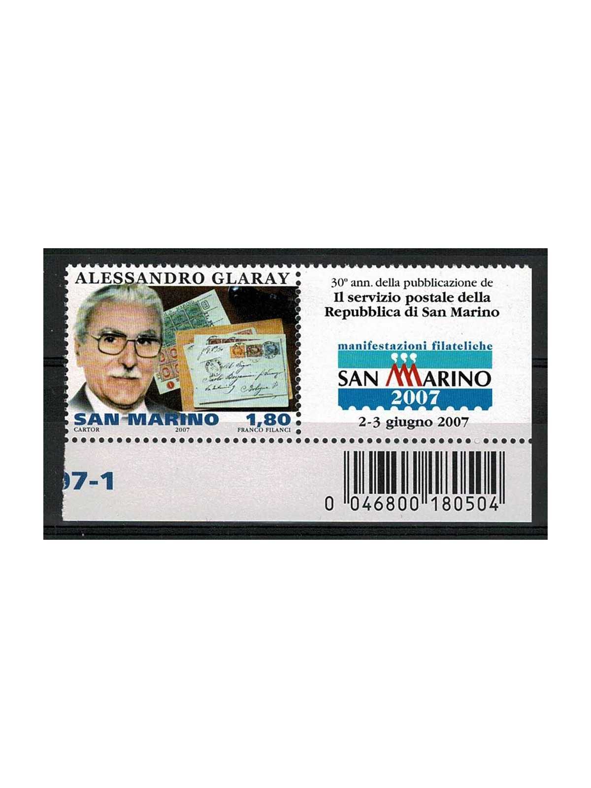 2007 SAN MARINO N. 2128 ALESSANDRO GLARAY 1 V. MNH CODICE A BARRE MF69537