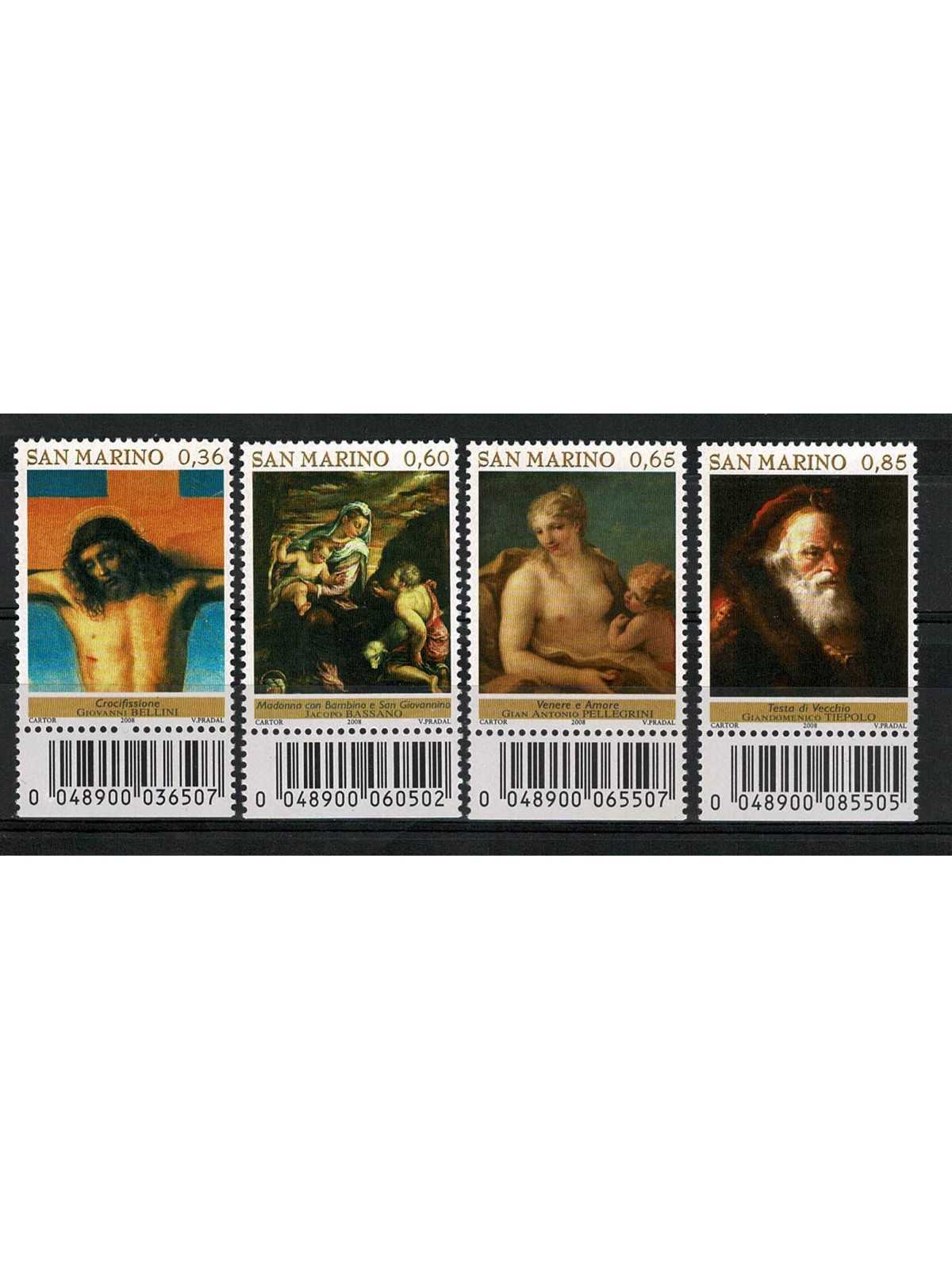 2008 SAN MARINO N. 2169 / 2172 CAPOLAVORI 4 V. MNH CODICE A BARRE MF69535