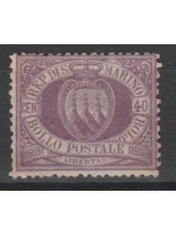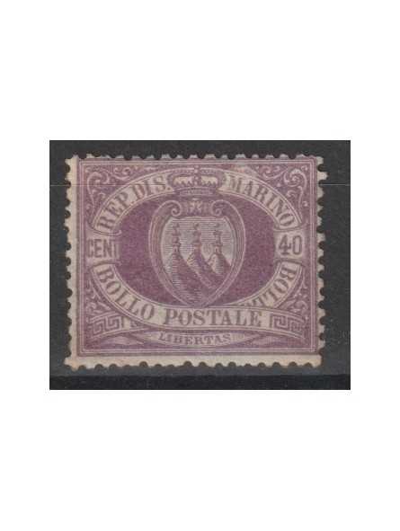 1877 SAN MARINO STEMMA SASSONE N° 7 - 40 CENTESIMI LILLA MLH MF127733