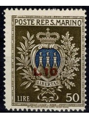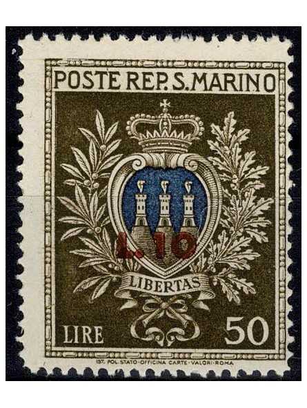 1946 SAN MARINO PRO OPERE ASSISTENZA SOPRASTAMPATO L. 10 SU L. 50 MNH MF133686