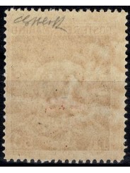 FRANCOBOLLO DA LIRE 50 DELLA SERIE STEMMI SOPRASTAMPATO IN ROSSO LIRE 10