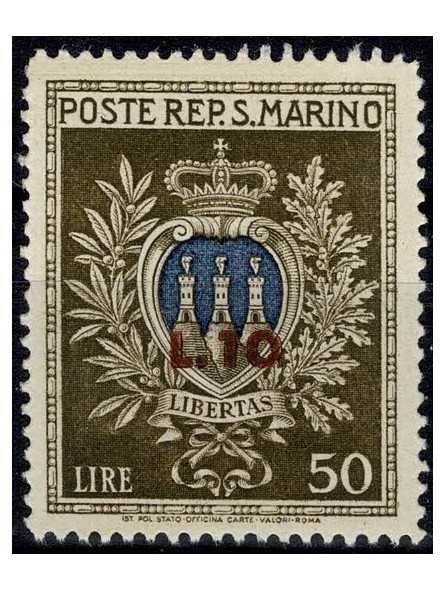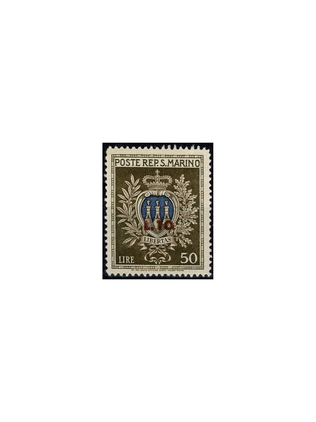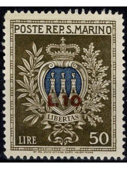 1946 SAN MARINO PRO OPERE ASSISTENZA SOPRASTAMPATO L. 10 SU L. 50 MNH MF133688
