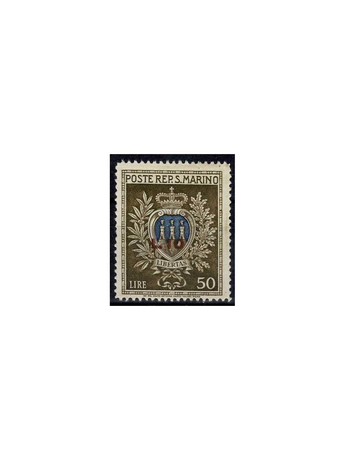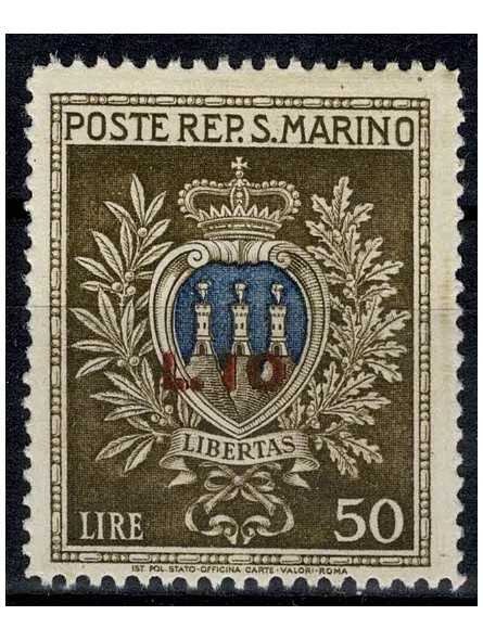 1946 SAN MARINO PRO OPERE ASSISTENZA SOPRASTAMPATO L. 10 SU L. 50 MNH MF133690