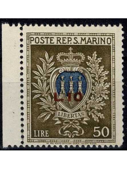 1946 SAN MARINO PRO OPERE ASSISTENZA SOPRASTAMPATO L. 10 SU L. 50 MNH MF133693