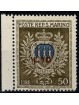 FRANCOBOLLO DA LIRE 50 DELLA SERIE STEMMI SOPRASTAMPATO IN ROSSO LIRE 10