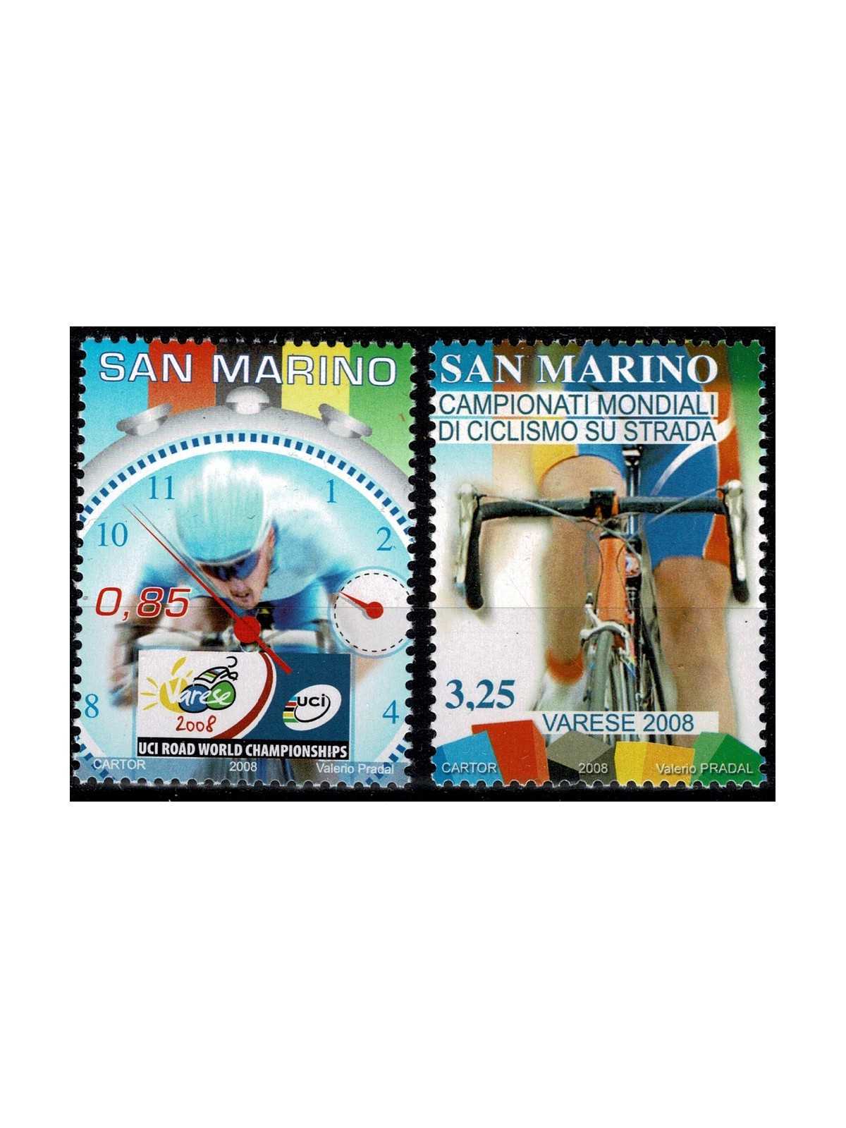 2008 SAN MARINO N. 2195 / 2196 MONDIALI CICLISMO STRADA 2 V. MNH MF135067