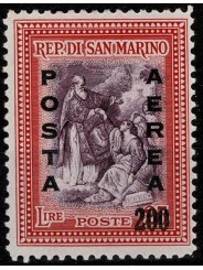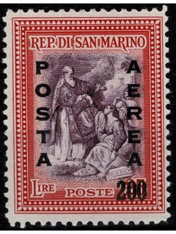 1948 SAN MARINO POSTA AEREA ALBERONIANA L. 200 SOPRAST. MLH MF132890