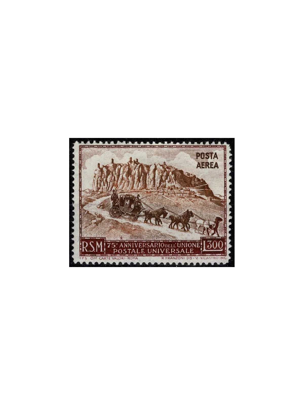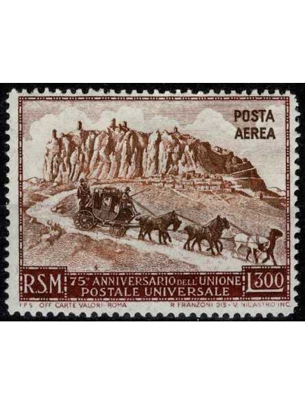 1951 SAN MARINO POSTA AEREA LIRE 300 75 ANNIVERSARIO U.P.U. MLH MF132886