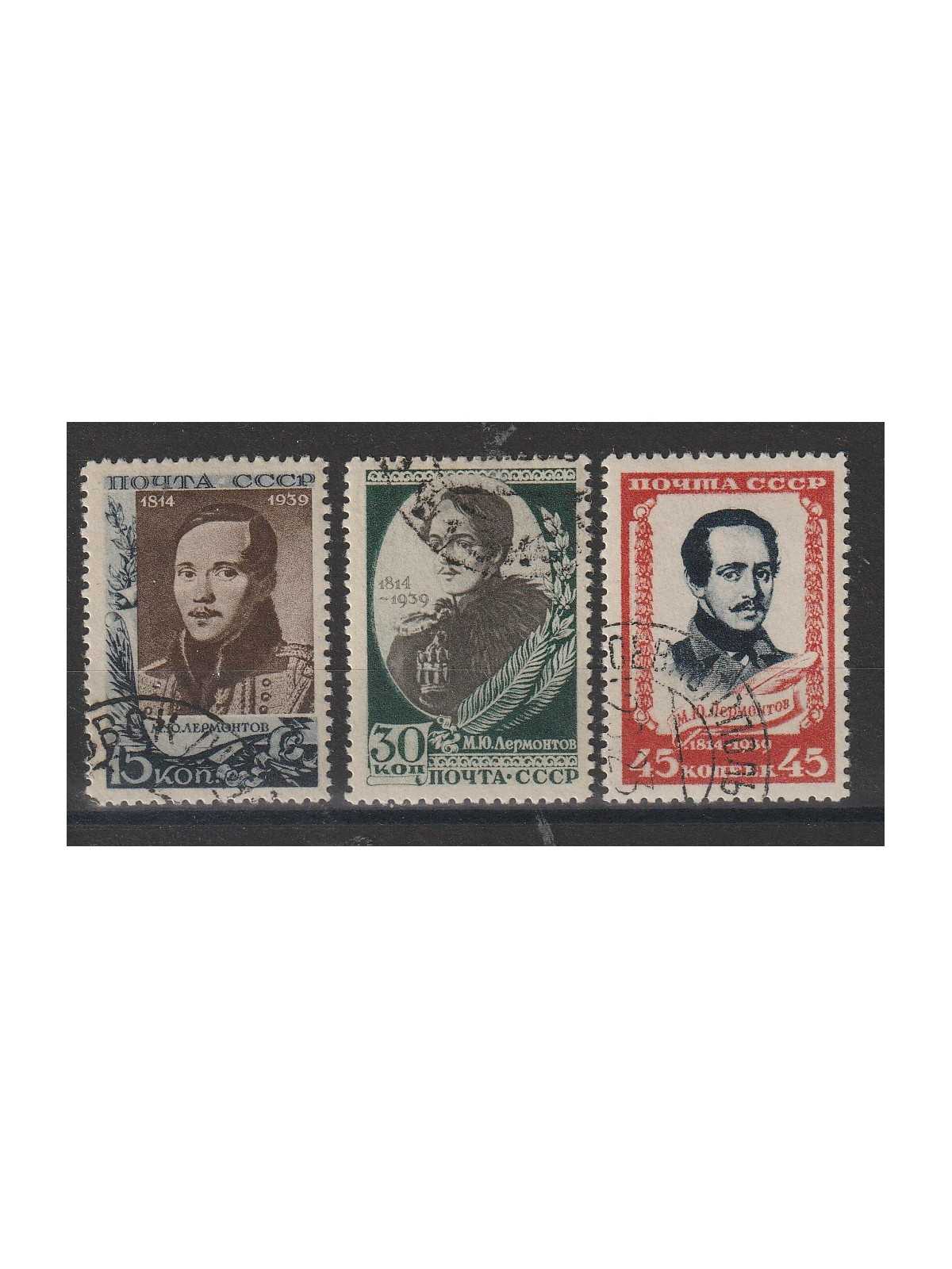 1939 RUSSIA URSS 125° ANN. NASCITA LERMONTOV POETA 3 V. USATI MF140558