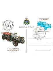 1985 SAN MARINO CARTOLINA POSTALE ALFA ROMEO USATO FDC MF135204