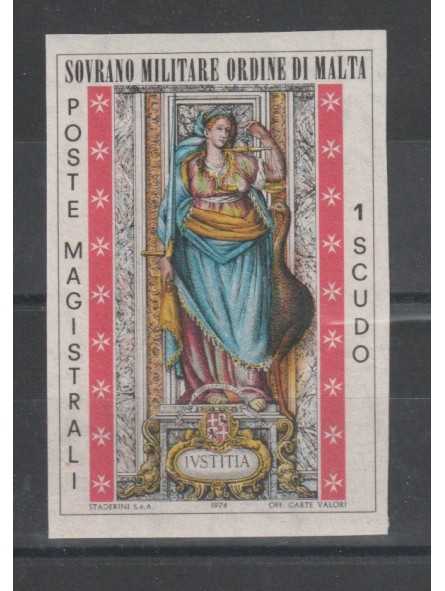 1974 SMOM VIRTU' 1 SCUDO NON DENTELLATO MNH MF128865