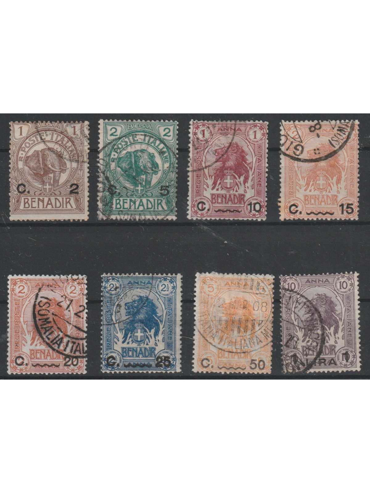 1906-07 SOMALIA SERIE ELEFANTE E LEONE SOPRASTAMPATI IN LIRE 8 V USATI MF129070