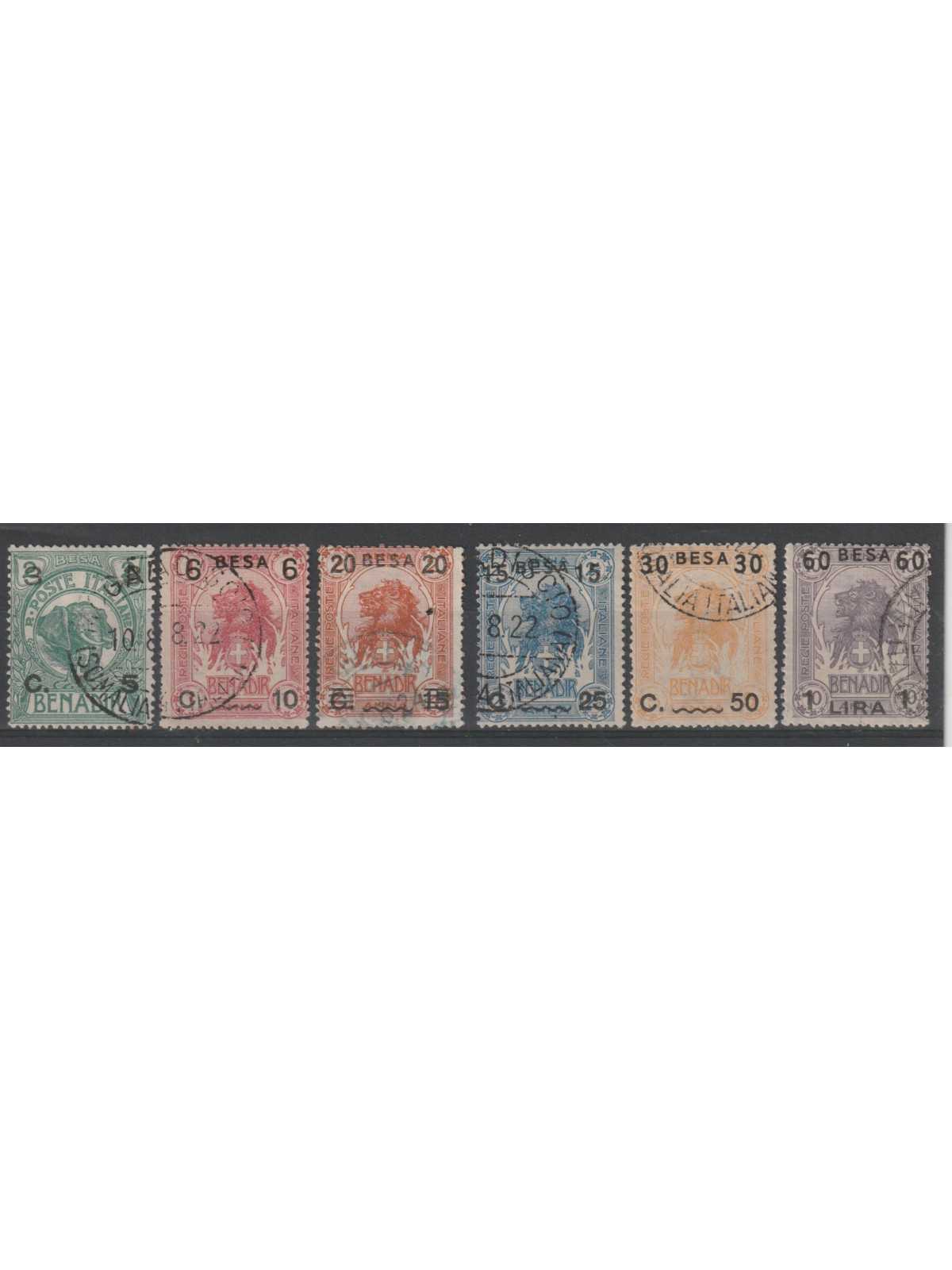 1922 SOMALIA ELEFANTE E LEONE SOPRAST IN BESA 6 VAL USATI MF129073