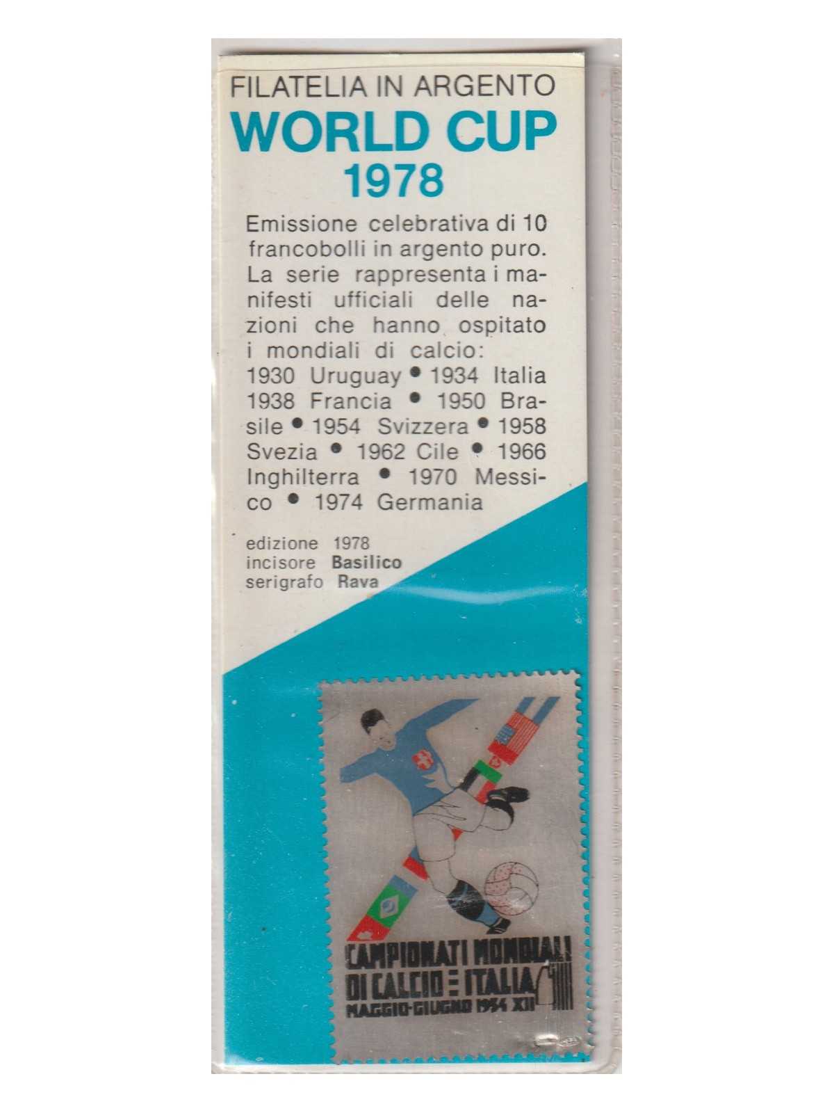 1978 WORLD CUP FRANCOBOLLO IN ARGENTO MONDIALI CALCIO ITALIA '34 - 1V. MF128129