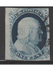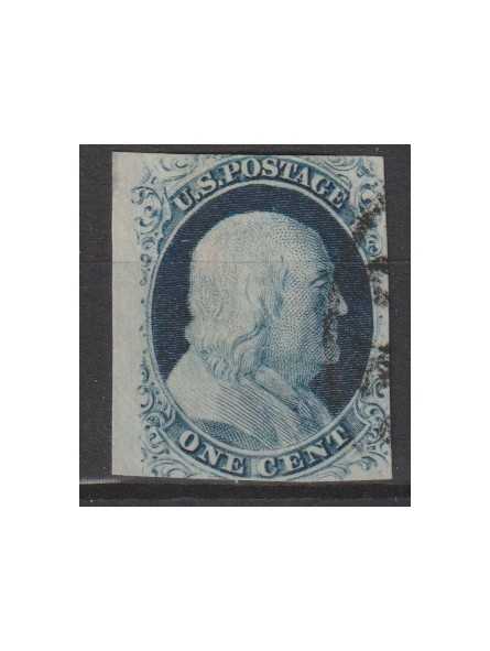 STATIUNITI - USA-1851-56 - B. FRANKLIN -1 CENTESIMO AZZURRO -NON DENTELLATO