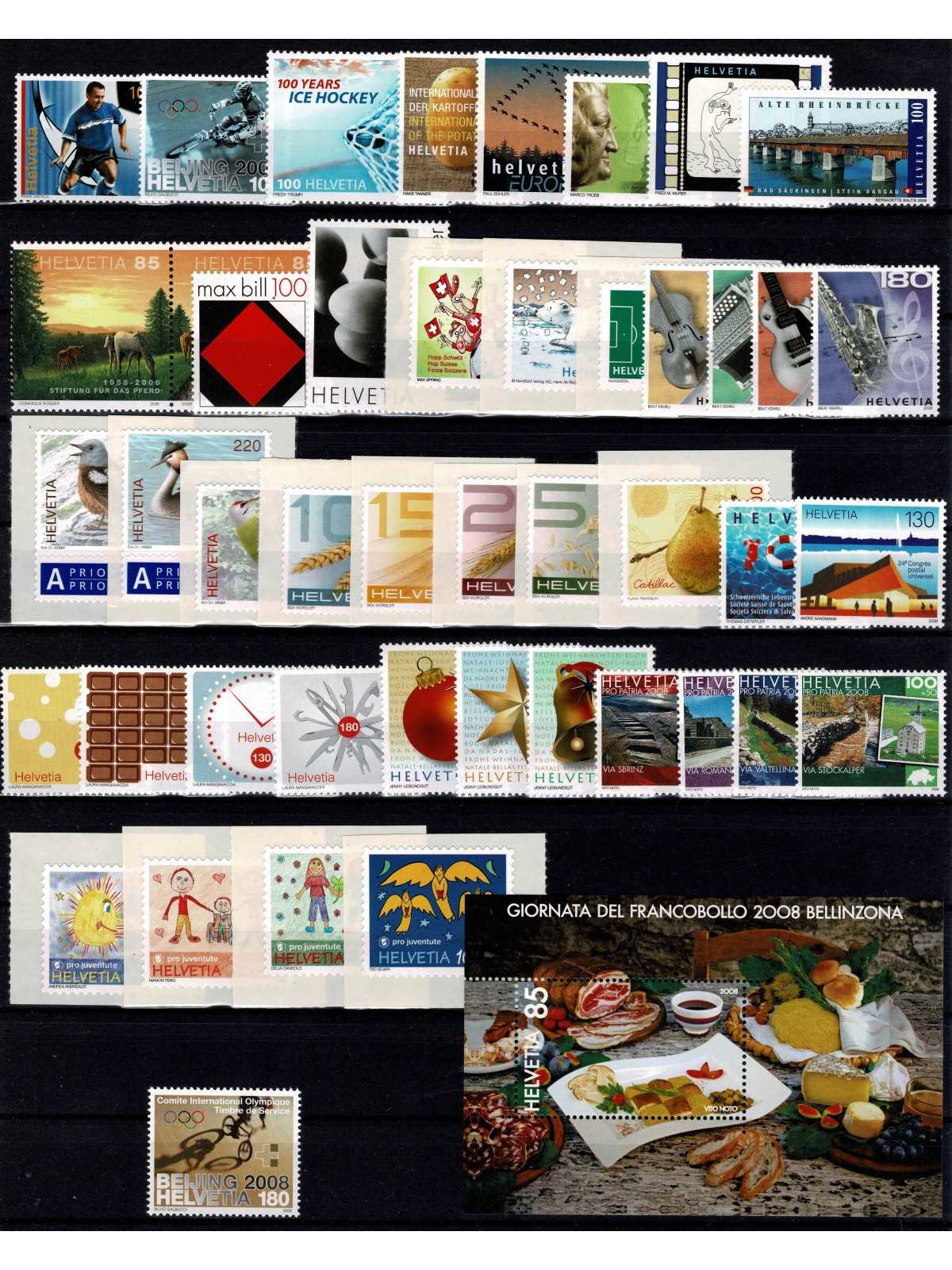 2008 SVIZZERA ANNATA COMPLETA 46 VALORI + 1 BF MNH MF69963