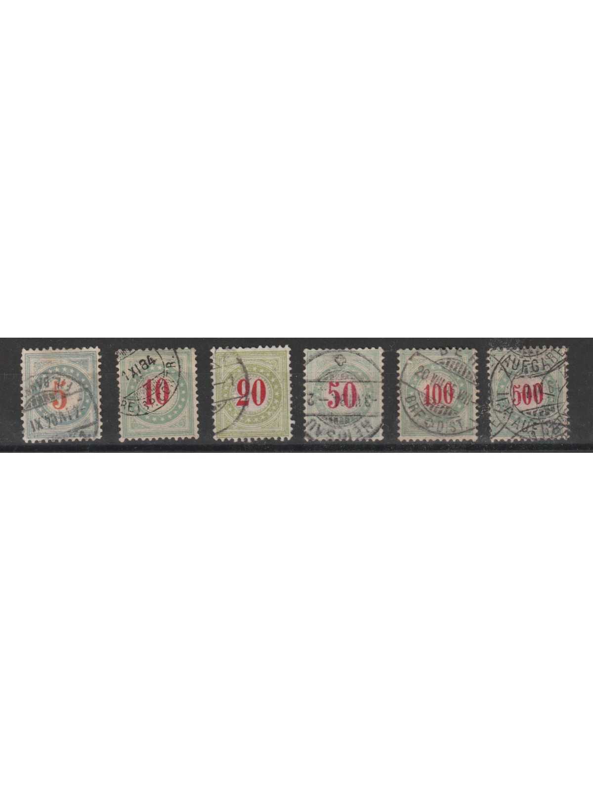 1883 SVIZZERA HELVETIA SEGNATASSE CIFRA IN CARMINIO ROSSO N° 36/41 - 6 VAL. USATI MF94745