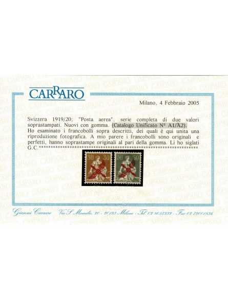 1919-20 SVIZZERA SWITZERLAND POSTA AEREA N A1-A2 2 VAL MLH CARRARO MF130699
