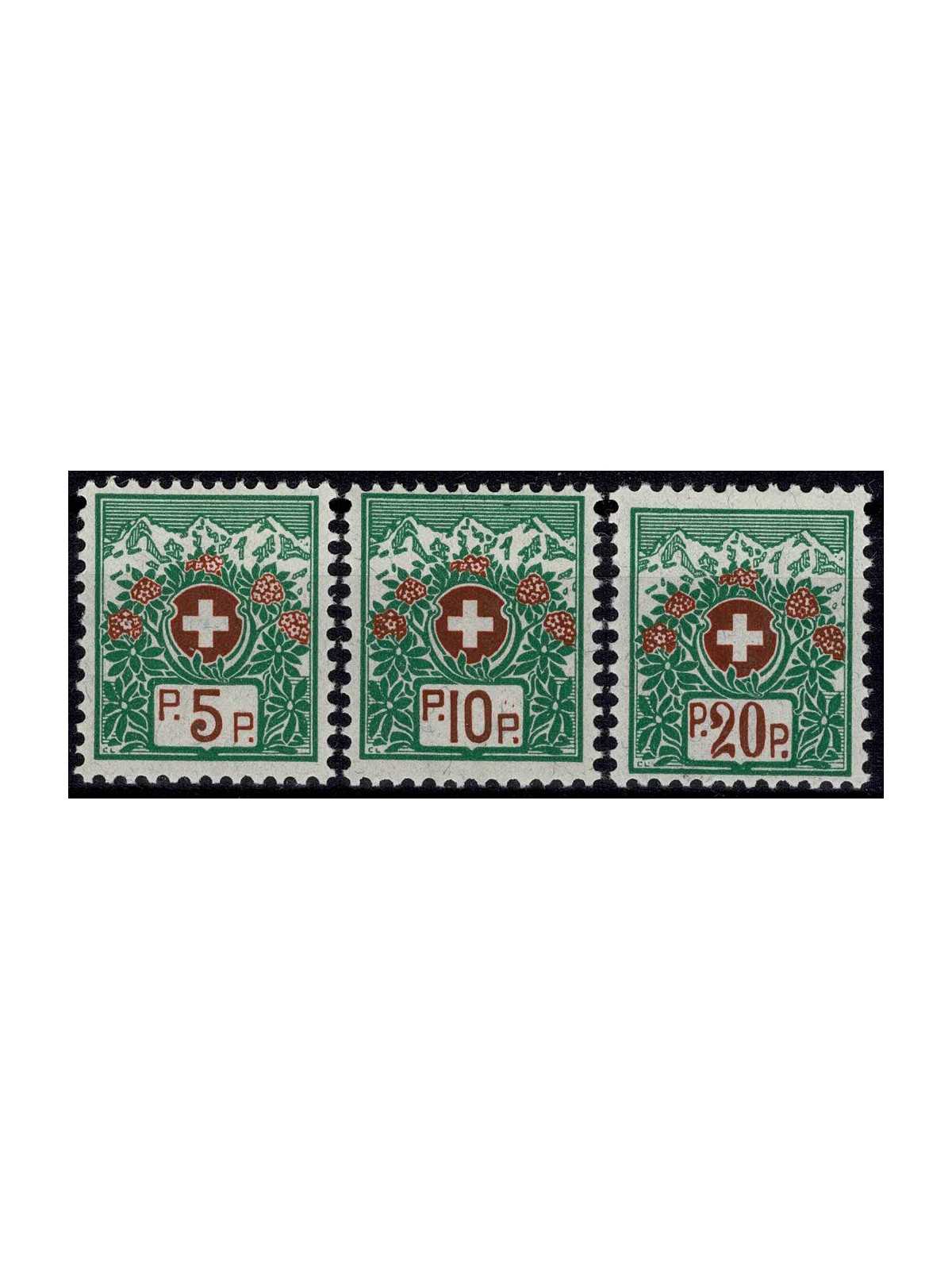 1927 / 29 SVIZZERA FRANCHIGIA CROCE BIANCA AL CENTRO 3 V MLH MF130718