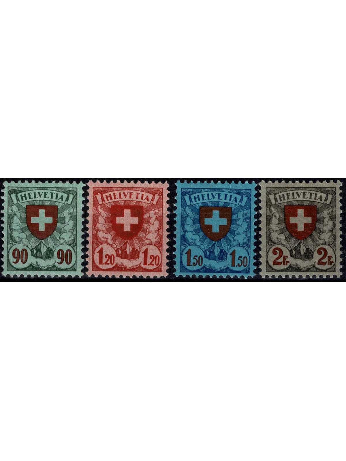 1924 SVIZZERA SERIE CROCE E SCUDO CARTA ORDINARIA 4 VALORI MLH MF130795