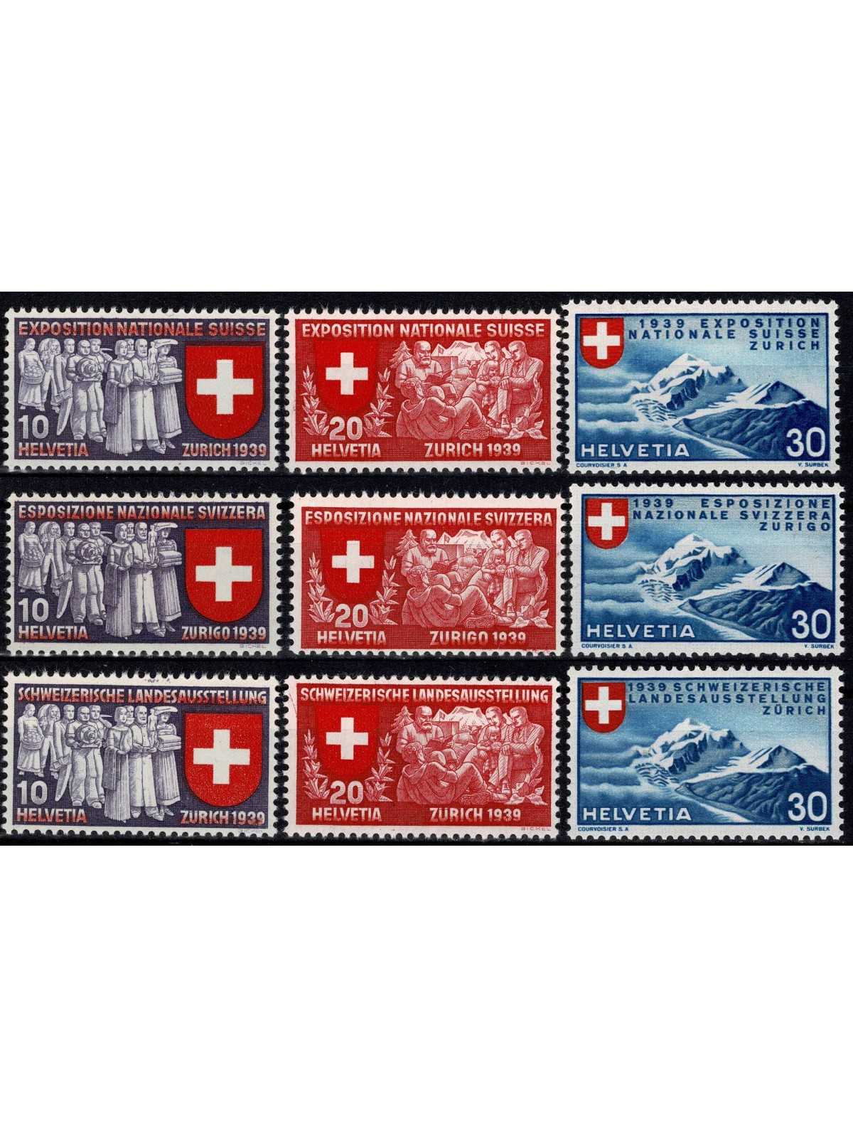 1939 SVIZZERA ESPOSIZIONE NAZIONALE DI ZURIGO 3 LINGUE 9 VALORI MNH MF130837