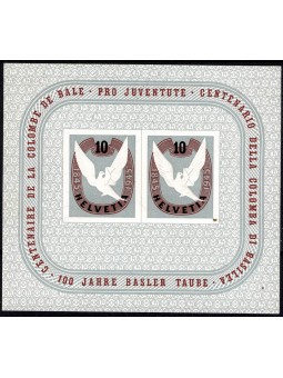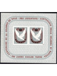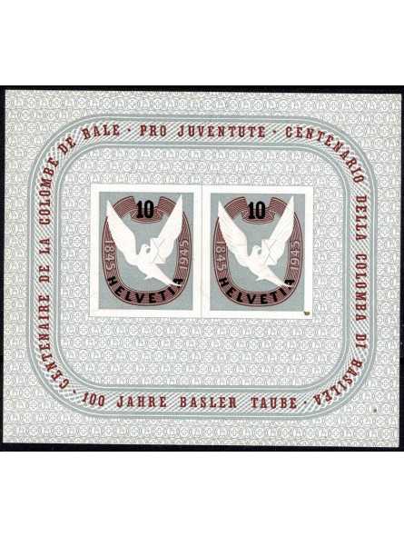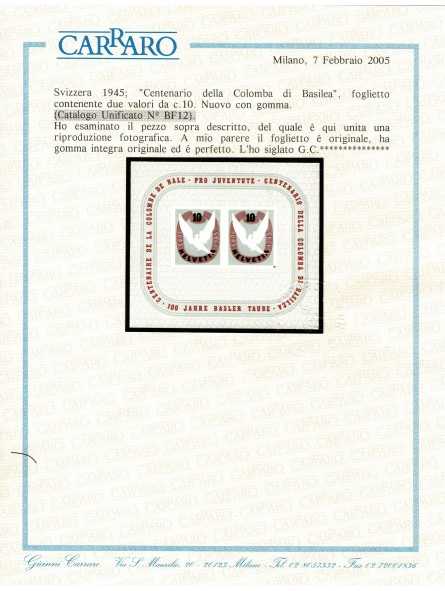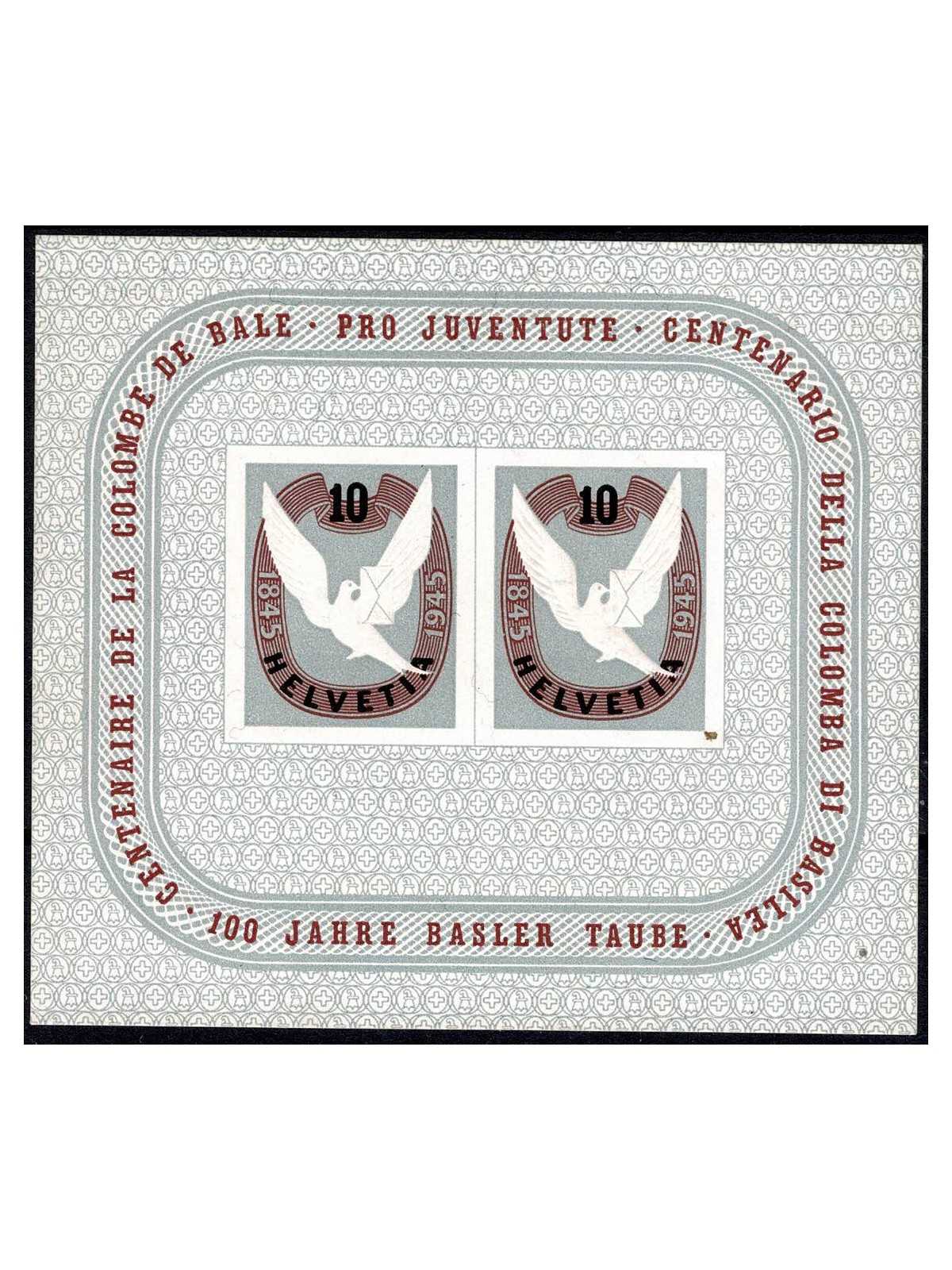 1945 SVIZZERA CENTENARIO DELLA COLOMBA DI BASILEA FOGLIETTO MNH CERT. MF130847