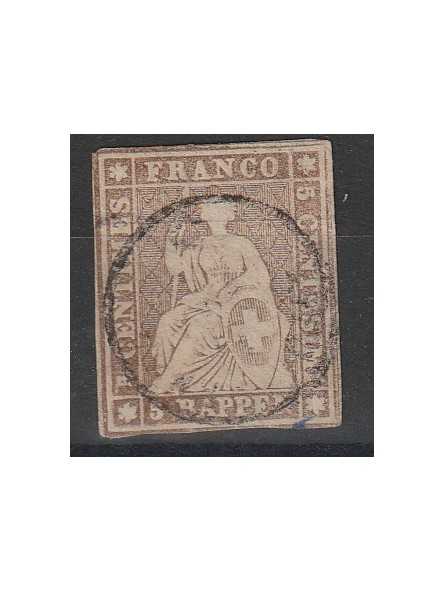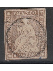 1854-62 SVIZZERA ALLEGORIA HELVETIA SEDUTA 5 RAPPEN BRUNO N° 26 USATO MF140639