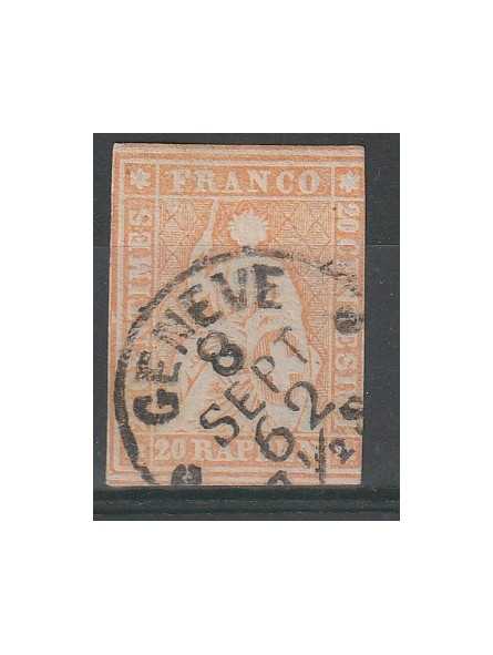 1854 SVIZZERA ALLEGORIA HELVETIA SEDUTA 20 RAPPEN ARANCIO N 29 US.MF140648