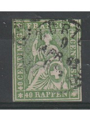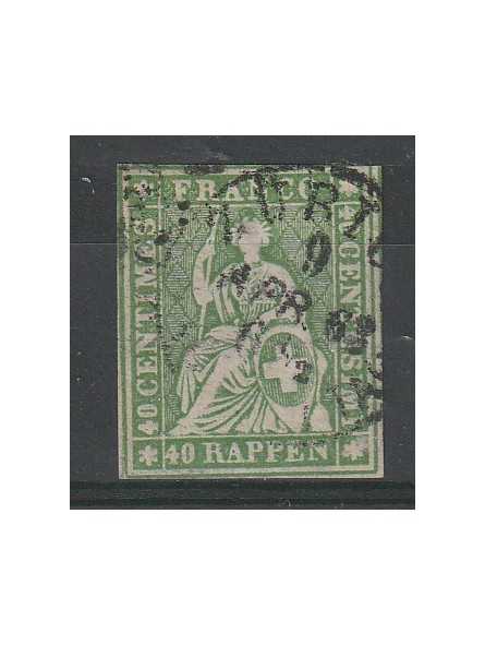 1854-62 SVIZZERA ALLEGORIA HELVETIA SEDUTA 40 RAPPEN VERDE N°30 US. MF140653