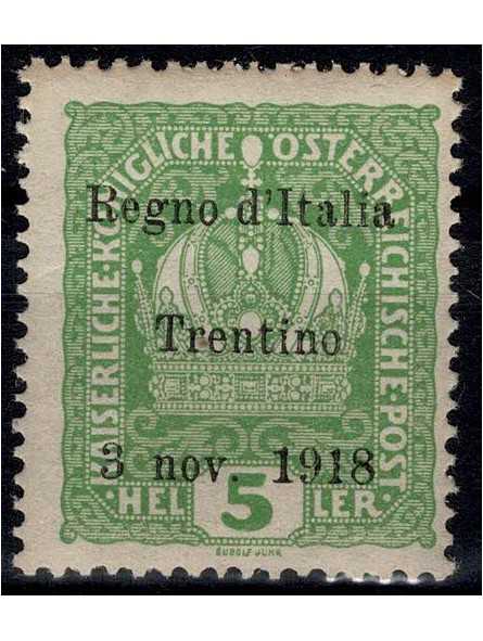 1918 TERRE REDENTE TRENTINO ALTO ADIGE 5 H VERDE GIALLO SASSONE N 2 MNH MF132127